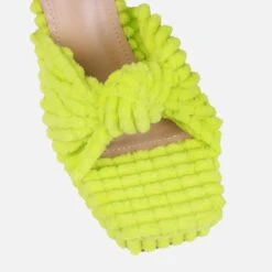 Having a colourful moment in these platform mules. Featuring a square toe, knot front strap, platform and a flared block heel. Add these to your suitcase this spring/summer season.
