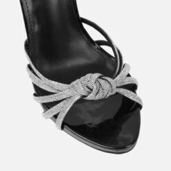 sitting pretty in these lace up heels. featuring knotted diamante front trim, platform, lace ups and a stiletto heel. wear them on your next date night.