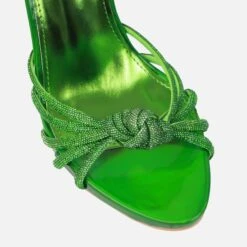 sitting pretty in these lace up heels. featuring knotted diamante front trim, platform, lace ups and a stiletto heel. wear them on your next date night.
