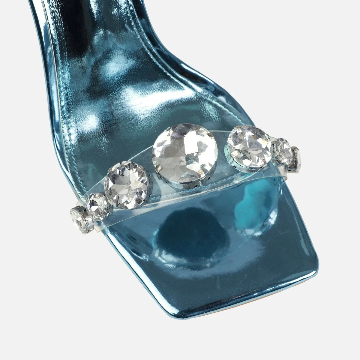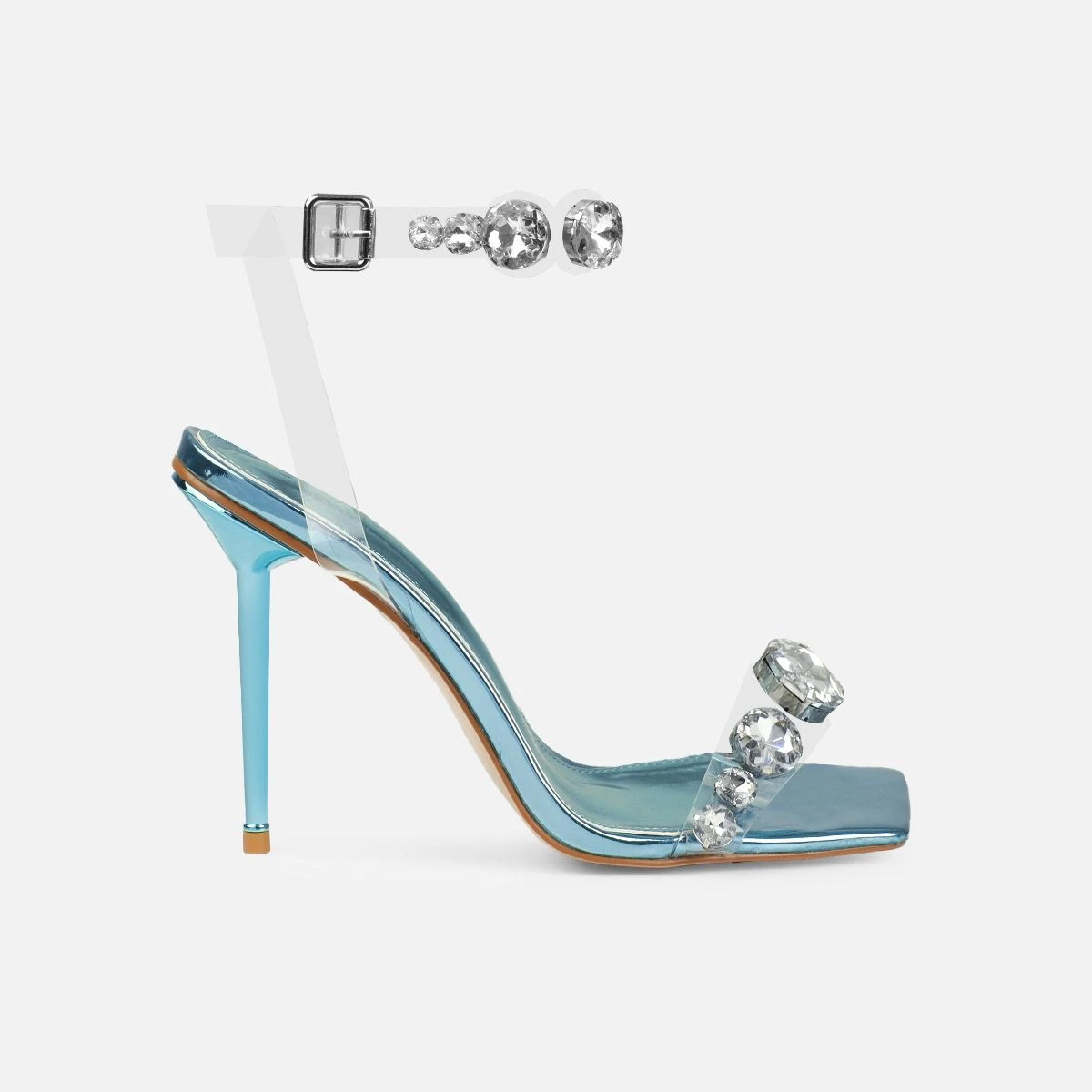 These gem heels > everything else in your shoedrobe. Featuring a square toe, clear gem front and ankle buckle strap and a stiletto heel. Wear these on your next date night.
