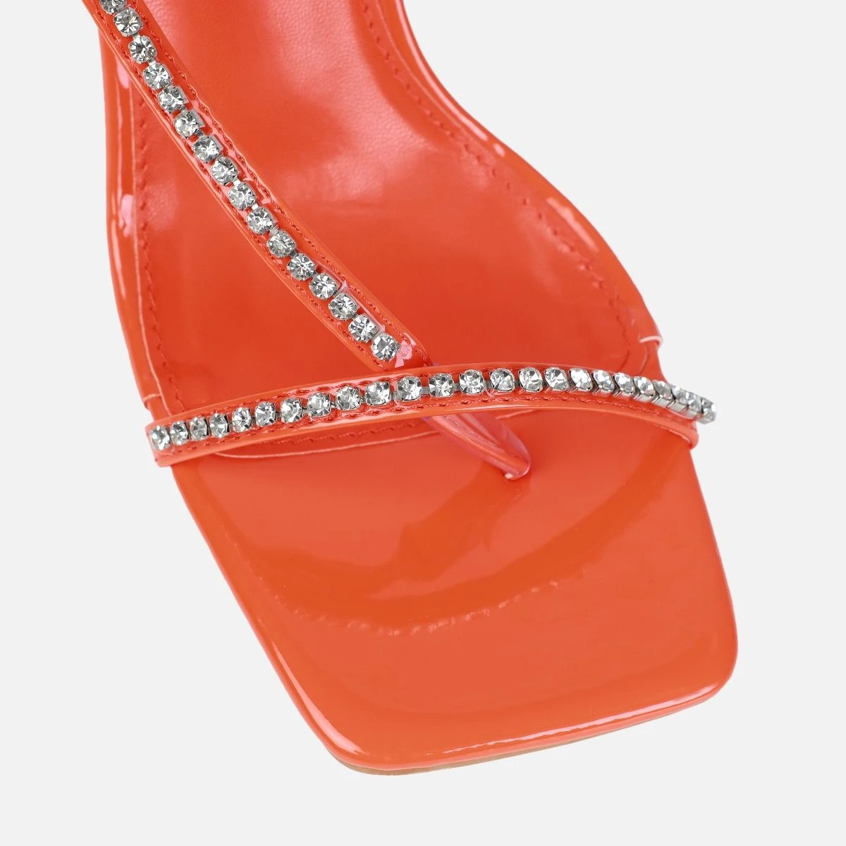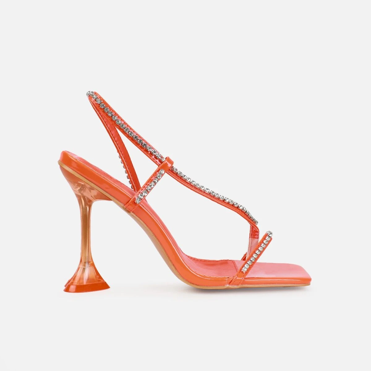 These heels are made to make a statement. Featuring a square toe, diamante toe thong slingback strap and a heart shaped heel. Wear these on your next date night.