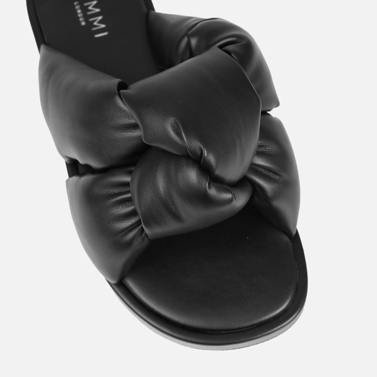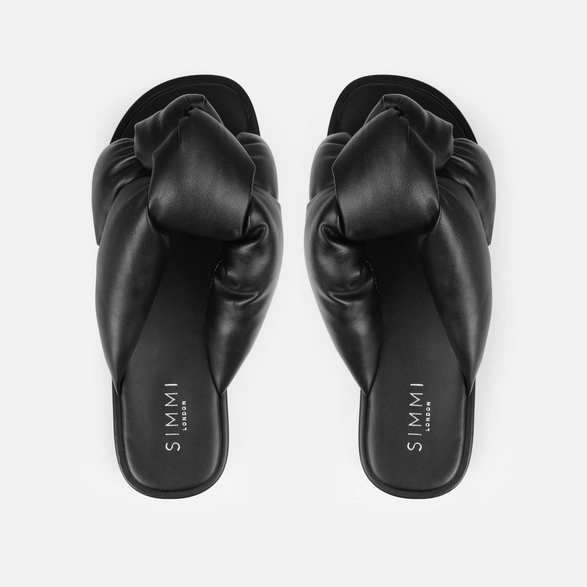 Your shoedrobe called, it wants these padded slides. Featuring chunky padded knotted front straps. Wear these on holiday, bbq’s, brunches and more.