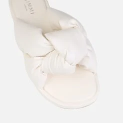 Your shoedrobe called, it wants these padded slides. Featuring chunky padded knotted front straps. Wear these on holiday, bbq’s, brunches and more.